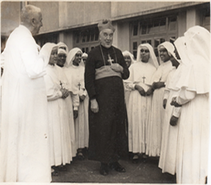 The sisters with our Founder, Bishop Stephen Ferrando along with Rev. Fr,N. J. Kenny ( SDB) along with with sisters in the school campus.